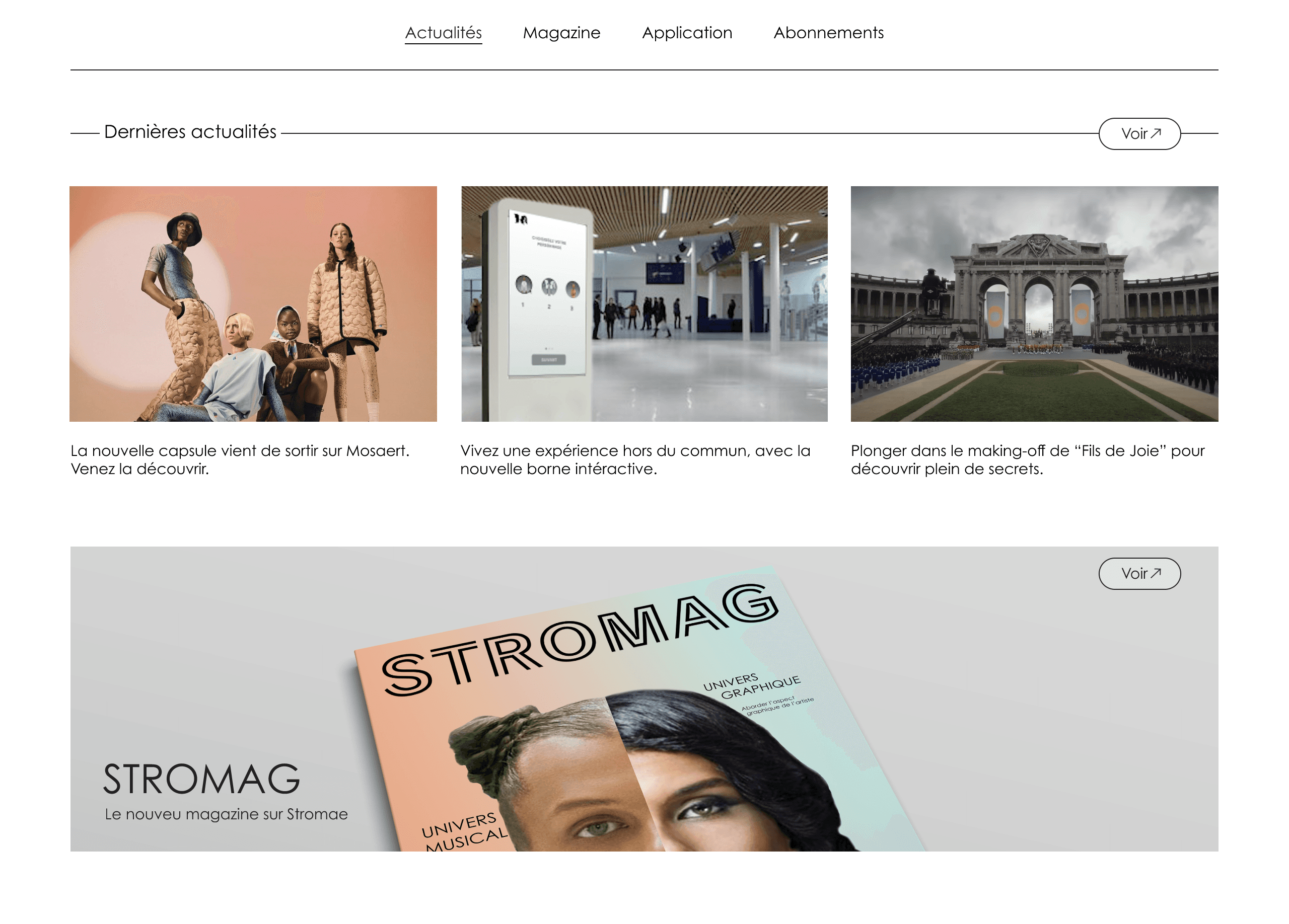 La page d’accueil propose une structure hiérarchisée, avec une barre de navigation qui rend les sections principales – Actualités, Magazine, Application et Abonnements – facilement accessibles. Cela garantit une navigation fluide et une expérience utilisateur optimisée.